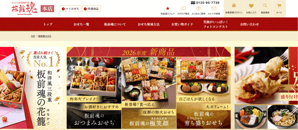 「板前魂」は、おせち通販市場において売上・知名度ともにNo.1の実績を誇るブランドです。楽天市場やYahoo!ショッピングなど大手通販サイトでも常に上位を獲得し、リピーター率の高さでも有名。