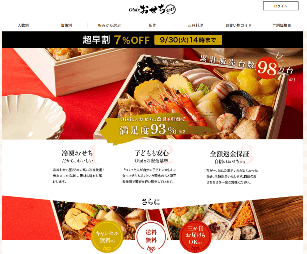 👉 無添加・健康志向。子育て世代やシニア層に安心のおせち。