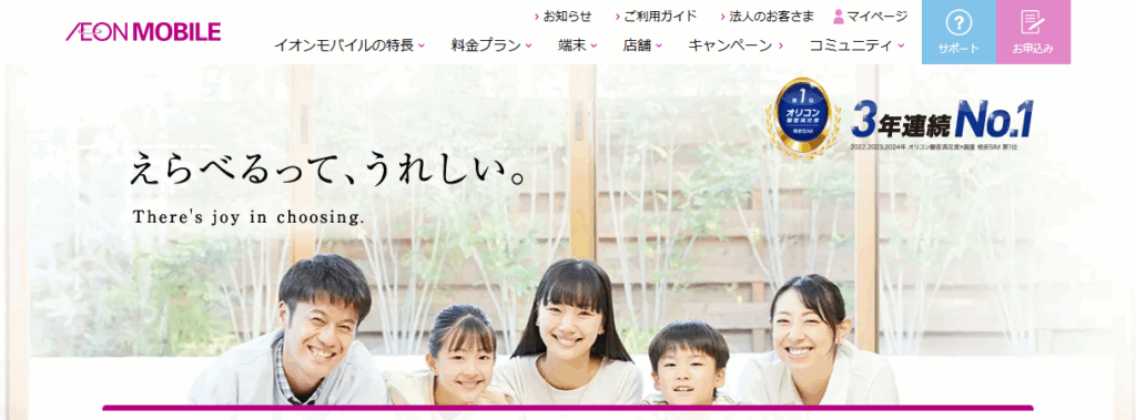 イオンモバイルは「家族での利用」に特に強いサービスです。
