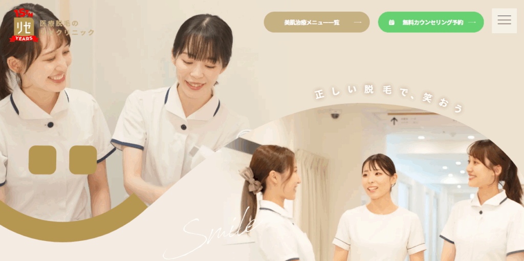 男性のイメージが強いが、女性脱毛でも実績多数。 - 第3位:リゼクリニック